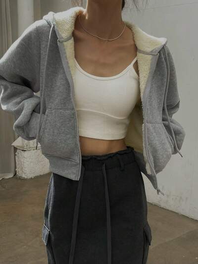 Damen Thermofutter Slim Fit Sweatshirt Kapuzenpullover, Thermofutter Herbst/Winter Reißverschluss Jacke-51%