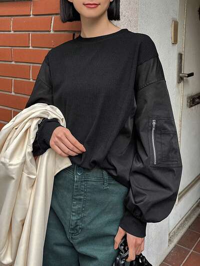 Damen Patchwork Ärmel Oversized Sweatshirt, Langarm Oberteil, Herbstmode-39%