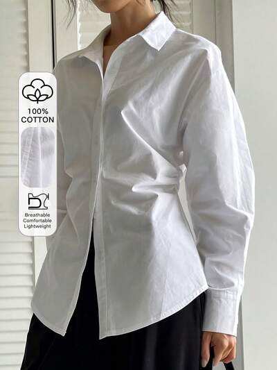 Damen Frühlings- & Sommer Einfarbige Lässige Langarm Bluse, Herbstkleidung