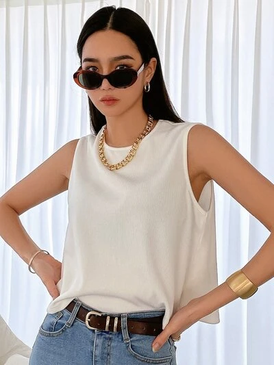 Einfarbiges Rippstrick-Tank-Top für den Sommer-42%