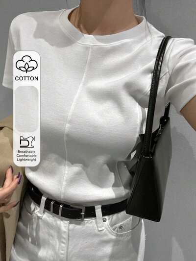 1 Stück Damen Rundhals Kurzarm Basic Layering T-Shirt, Business Lässig Damen-48%