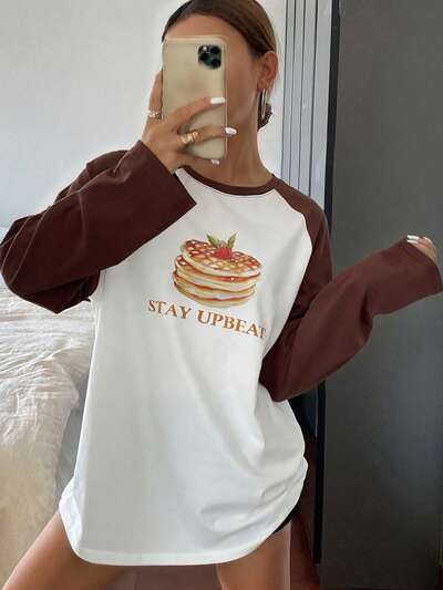 Lässiges Damen T-Shirt im Loose Fit Sommerstil mit Slogan Muster, Dropped Shoulder und Rundhalsausschnitt, DIES IST EIN FARBLOSES TRANSPARENTES COCKTAIL DEKORIERT MIT OLIVEN NACH DEM MISCHEN VON WERMUT MIT GIN, überschnittene Silhouette, Grafik T-Shirt