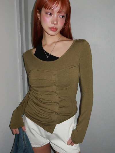 Asymmetrischer Ausschnitt Slim Tee, Langarm Damen Tops für den Herbst-55%