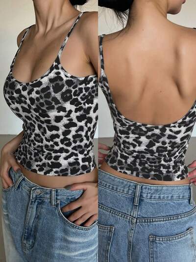 Damen tailliertes Oberteil mit Leoparden-Muster und offenem Rücken, Tops, Kleidung für den Schulanfang-33%