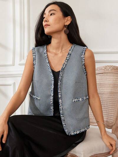Damen einfarbige Strickweste mit Metalldekoration, Sommer
