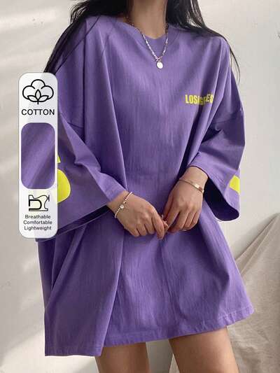 Oversized T-Shirt mit Buchstaben-Muster und kurzen Ärmeln mit Dropped Shoulder-33%