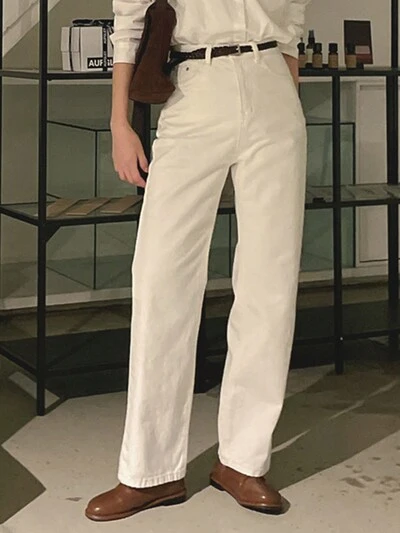 Damen einfarbige gerade geschnittene Lässig Jeans, Kleidung für den Schulanfang-40%