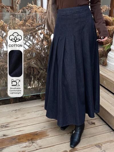 Lange plissierte Damen Jeans-Lässig rock, Große Größen-43%