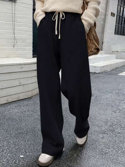 Einfarbige Jogginghose mit Kordelzug und Seitentaschen, Damen Jogginghose Herbst Jogginghose-41%