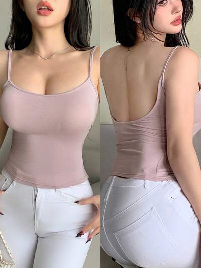Damen Slim Fit rückenfrei Trägerhemd, einfaches Modedesign, geeignet für den Sommer, einfarbiges Trägershirt, Kleidung für den Schulanfang-43%
