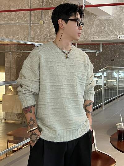 Jersey de cuello redondo con textura jacquard vintage para hombre, otoño/invierno