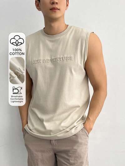 Camiseta sin mangas de cuello redondo para hombre con impresión de letras para el verano-31%