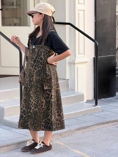 Vestido peto de mezclilla con estampado de leopardo para niñas-58%
