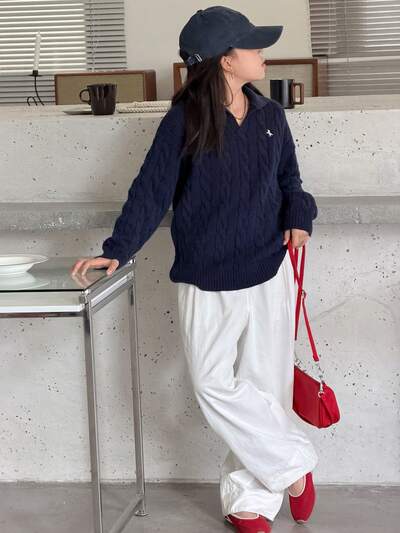Suéter con cuello bordado para niñas preadolescentes, otoño