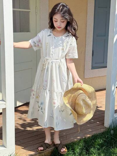 Vestido de manga corta y cuello redondo para niña preadolescente en verano