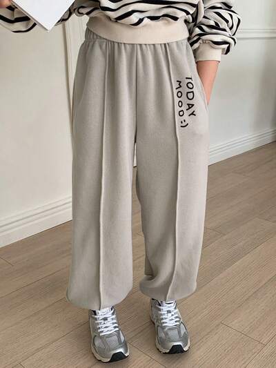 Pantalón de chándal con bolsillo y estampado de letras para niña preadolescente, uso casual para todos los días