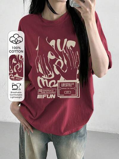 Camiseta holgada de estilo callejero para mujer con diseño gráfico audaz LIFESTYLE Abraza el futuro ABRAZA EL FUTURO DIVERSIÓN Sí Camiseta de verano oversize Ropa urbana