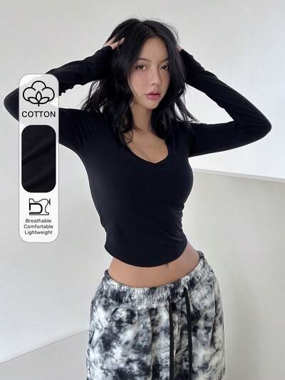 Camiseta corta de un solo color, ropa de vuelta al colegio, blusas de manga larga para mujer