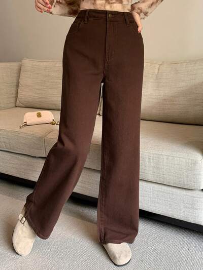 Jeans anchos de pierna ancha de ajuste holgado y lavado casual para mujer, otoño