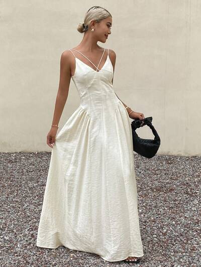 Nuevo vestido largo de mujer con tirantes finos, estilo casual de vacaciones, para otoño, regreso a la escuela, vestido maxi, atuendo para crucero-47%