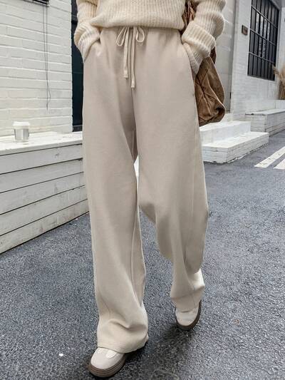 Pantalones anchos de pierna ancha de unicolor casuales y holgados para mujeres