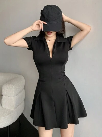 Vestido de verano casual con cuello y mangas cortas para mujer, vestido corto