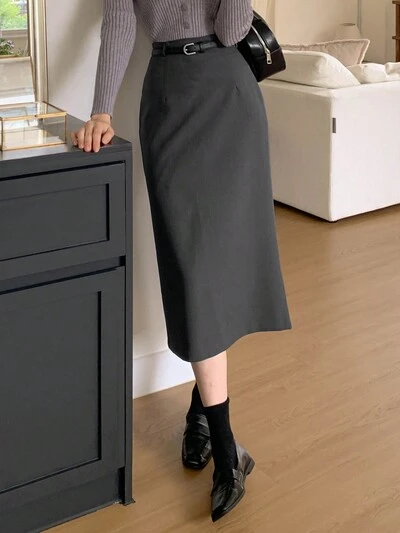 Falda de tubo de unicolor con abertura lateral para mujer