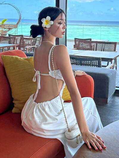 Vestido de mujer con tirantes finos y espalda descubierta, de estilo festivo, elegante diseño de fiesta para mujer, atuendos de playa, festivales, baile de graduación, vacaciones y crucero