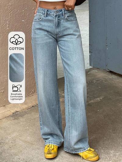 Jeans de cintura baja y pierna recta para mujer, pantalones vaqueros de estilo casual de calle