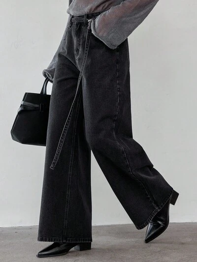Jeans anchos de estilo coreano casual y suelto con bolsillos y botones para mujer