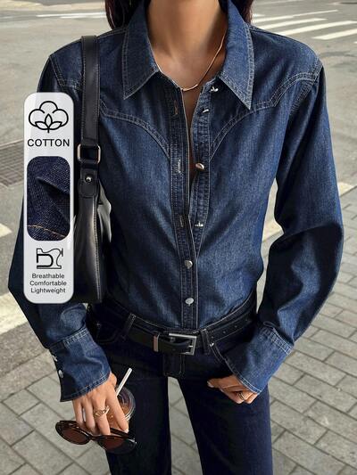 Chaqueta vaquera casual ajustada con cintura ceñida y cuello para mujer