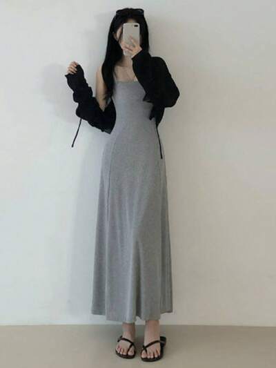 Vestido largo de tirantes de primavera con jacquard de lámina de oro, sensación de alta gama, ropa de vuelta al colegio para mujeres