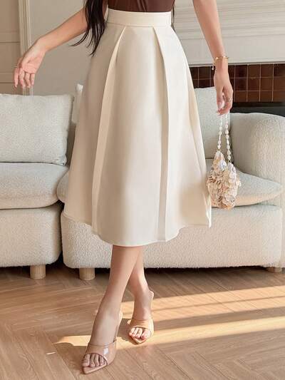 Falda acampanada de unicolor estilo retro francés para mujer