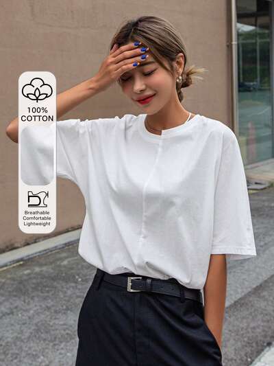 Camiseta de hombros caídos de color sólido, estilo preppy de verano-28%