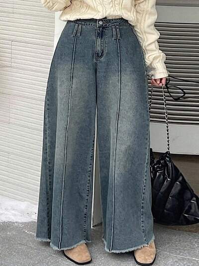 Dazy Plus Vestido vaquero largo de talla grande con lavado vintage, desgastado y suelto, con decoración de línea dividida en la cintura, para mujeres de talla grande en otoño-42%