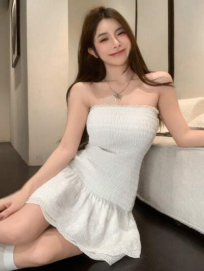 Vestido casual y dulce de niña con estampado floral de encaje blanco, adecuado para el Día de San Valentín, boda, fiesta, evento de moda, uso elegante de oficina estilo bohemio
