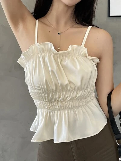 Top de canesú con volantes y recogido, tipo top de muñeca