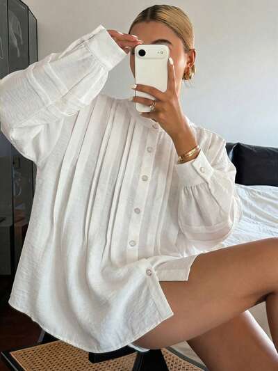 Blusa elegante de unicolor con cuello estilo coreano para mujer