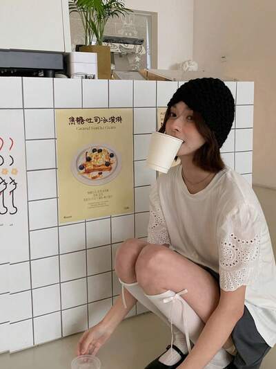 Camiseta de manga corta de cuello redondo de unicolor con bordado hueco, estilo coreano, para verano-47%