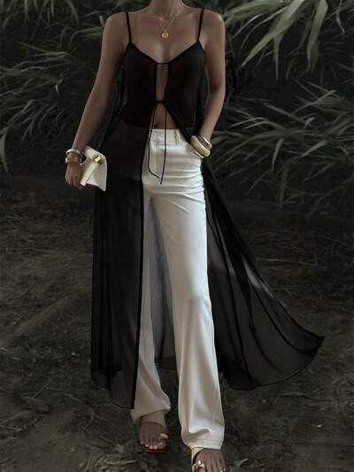Blusa holgada de cuello redondo semitransparente y casual de verano para mujeres altas