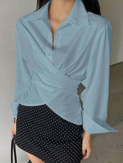 Camisa De Manga Larga De Tela Arrugada Para Mujer-65%