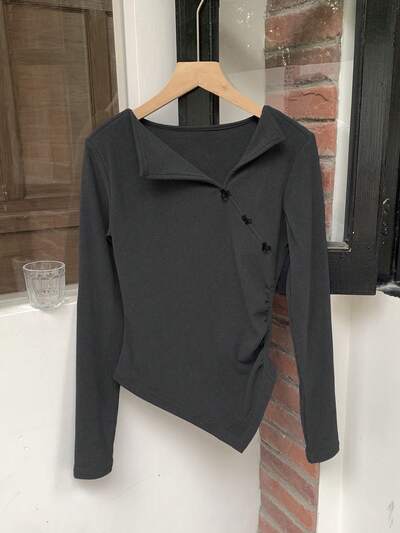Camiseta de manga larga con cuello asimétrico y lazo, ajuste ceñido, para otoño, ropa de vuelta al colegio