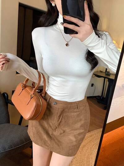 Camiseta de cuello alto de unicolor básica para mujer, de manga larga para otoño/invierno