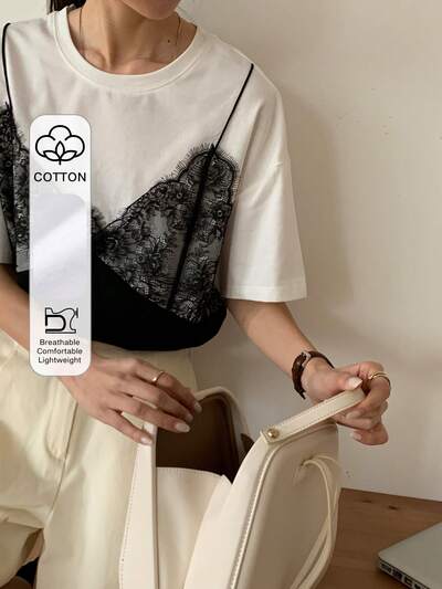 Camiseta de encaje y camiseta de manga corta para mujer, look casual de verano