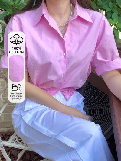 Camisa corta de cintura ceñida de unicolor, tops estilo preppy para mujer