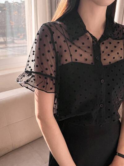 Blusa de mujer de manga corta semitransparente con lunares, moda minimalista casual para uso diario