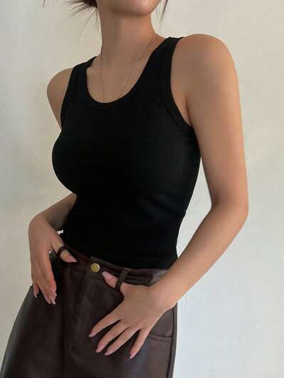 Top de tanque ajustado de cuello redondo de unicolor para damas para verano
