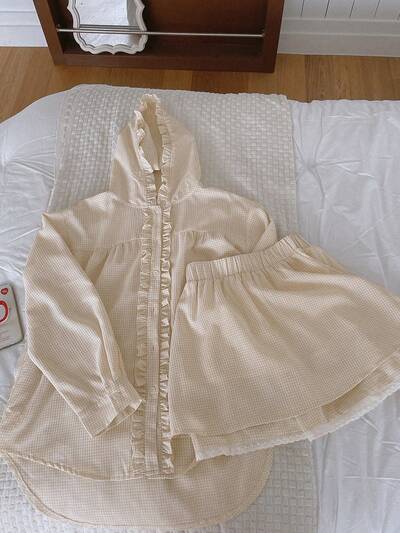 Conjunto de 2 piezas de shorts holgados con volantes y capucha para mujer, ideal para el verano