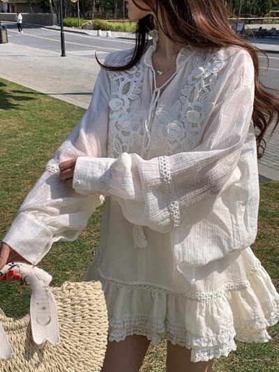 Conjunto de 2 piezas con cuello en V de encaje y parches, estilo coreano fresco