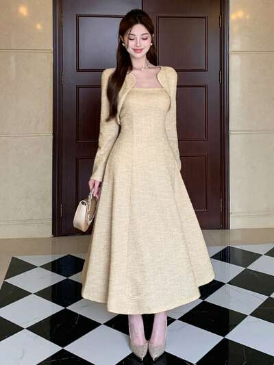 Set de 2 piezas: Vestido sin mangas elegante de alta gama y capa/chal para mujer